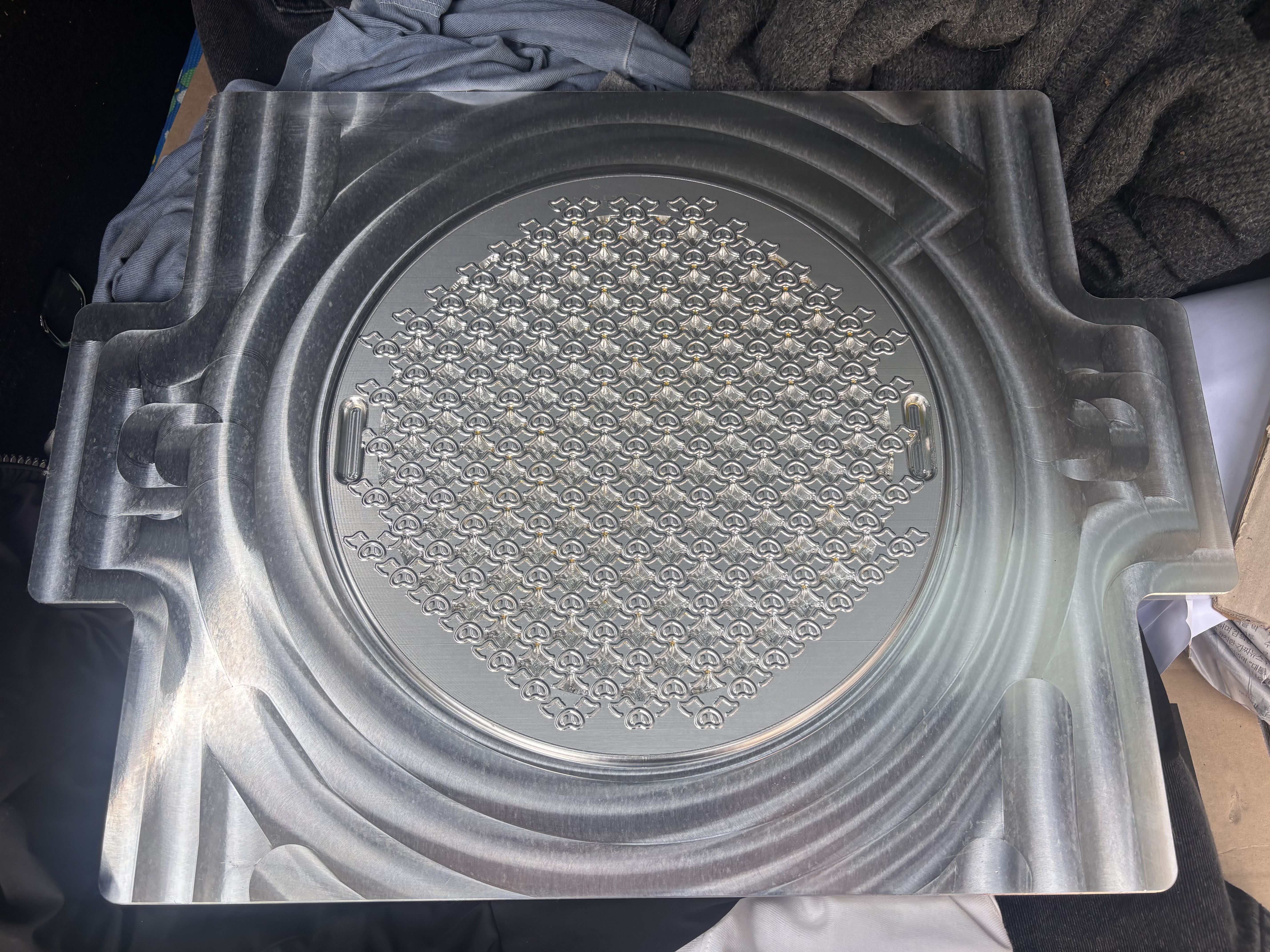 돼지 코 및 돼지 귀 패턴이 반복되는 복잡한 형상의 제품입니다. |